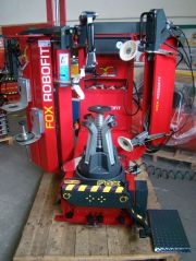 Fox Robofit ist eine Reifenmontiermaschine der neuesten Generation und stellt eine der größten Weltneuheiten der Sparte dar. Ein Merkmal macht diese Reifenmontiermaschine einmalig: das exklusive Roboterwerkzeug Robofit (Patent Mondolfo Ferro), das die Demontage und Montage jeder Art von Reifen, einschließlich Run Flat und Pax (mit optionalem Kit), ohne die Hilfe des Wulsthebels und daher ohne Kraftaufwand des Bedieners gestattet. Das Werkzeug Robofit besitzt zwei unterschiedliche Köpfen: einen Demontagekopf und einen Montagekopf, die beide aus hochwiderstandsfähigem Kunstoff gefertigt werden, um Beschädigungen an der Felge auszuschließen(WDK). Ihre spezielle Konfiguration verringert die Dehnung des Wulsts um bis zu 50% gegenüber herkömmlichen Werkzeugen. Das Abdrücken erfolgt dynamisch (MF-Patent) und garantiert eine perfekte Verteilung der für den Vorgang notwendigen Kraft auf den gesamten Wulstumfang, wodurch jede Beschädigungsgefahr der Reifenseiten vermieden wird. Die Benutzung der Maschine ist extrem einfach, intuitiv und sicher: Die ergonomische Konzeption und die vollständige Kontrolle der von einem einzigen Bedienelement aus aktivierten Bewegungen gestatten dem Bediener eine instinktive und schnelle Ausführung der Arbeit. Fox Robofit ist in zahlreichen Ausführungen lieferbar, um allen Anforderungen der Reifenspezialisten gerecht zu werden. Der spezielle pneuhydraulische Spanntisch, der andauernd unter Druck steht, ist in der Lage Felgen bis zu einem maximalen Durchmesser von 26” ohne Beschädigungsgefahr zu blockieren. Mit eigens vorgesehenen Adaptern die serienmäßig geliefert werden, kann er Räder mit verkehrtem Tiefbett von außen einspannen. Die Drehung des Spanntisches erfolgt mit Elektromotor mit zwei Geschwindigkeiten. Das gleichzeitige Abdrücken der beiden Reifenwülste ist extrem schnell, wirksam und sicher für den Reifen. Die Positionierung der Abdrückrollen zwischen Felge und Reifen wird durch die speziell geformten Spiegel oder in der LCD-Ausführung durch den eingebauten 5”-Flüssigkristall-Monitor (Optional) in ergonomischer Position an der Oberseite des Maschinenkorpus erleichtert.